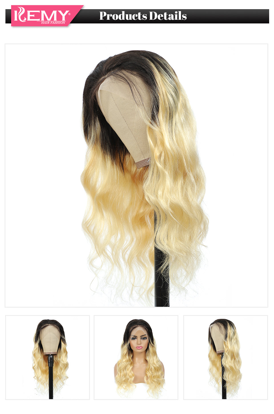 Kemy Hair Custom ombre 613 Body wave Human Hair 13X4 Lace Front wigs 16''-28''