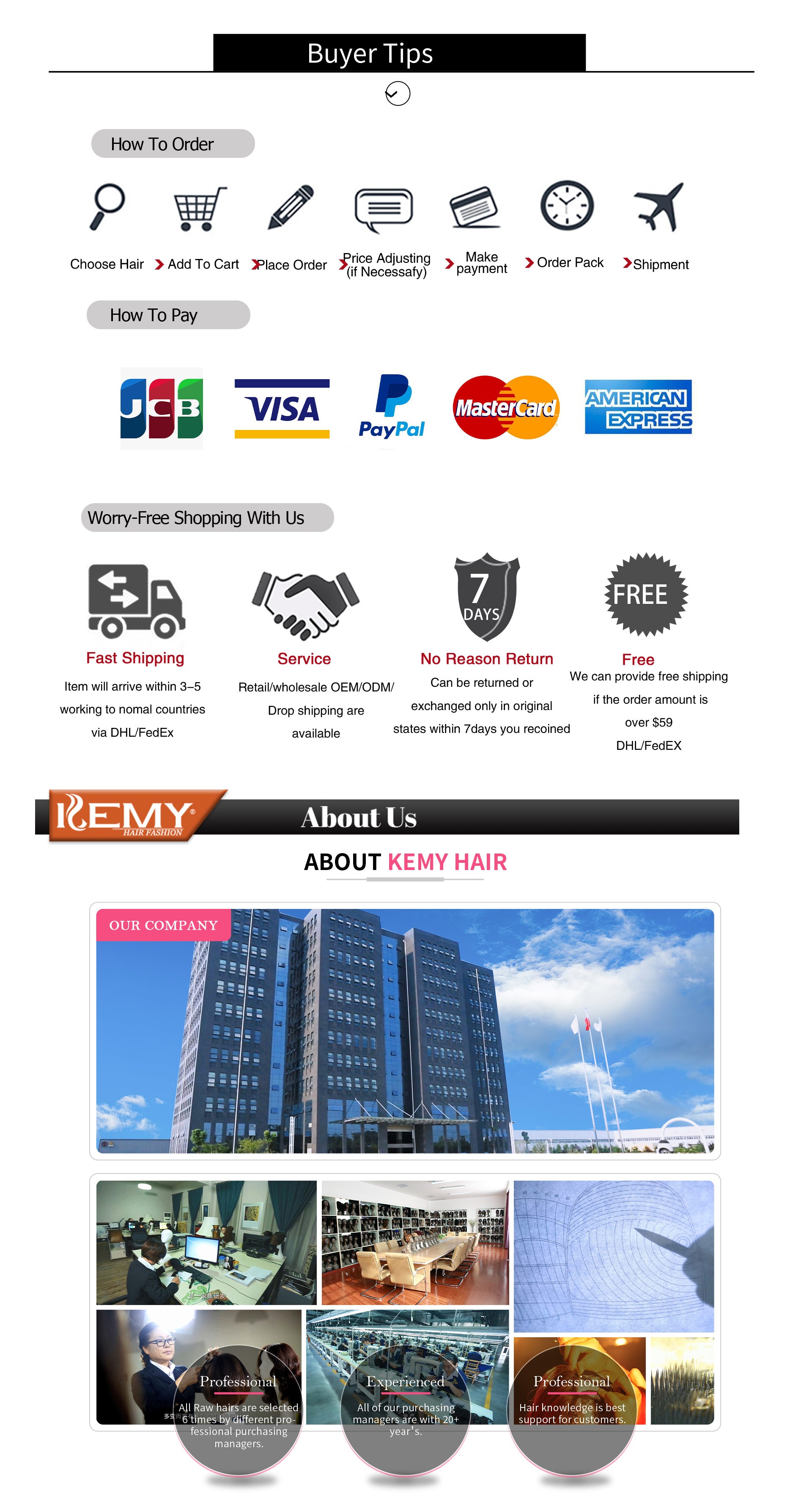 ►Return/refund for no reasons: If you want to return an item without any quality problem for exchange within 15 days once it is received, please send an email to this email address with your order number entitled: support@kemyhair.com. We will offer you the return address.To return your product, you should mail your product to: NO.888 of RuiMei R The Industrial Park of Weidu District XuchangHenanChina 461000 xuchang, 461000 Henan, China