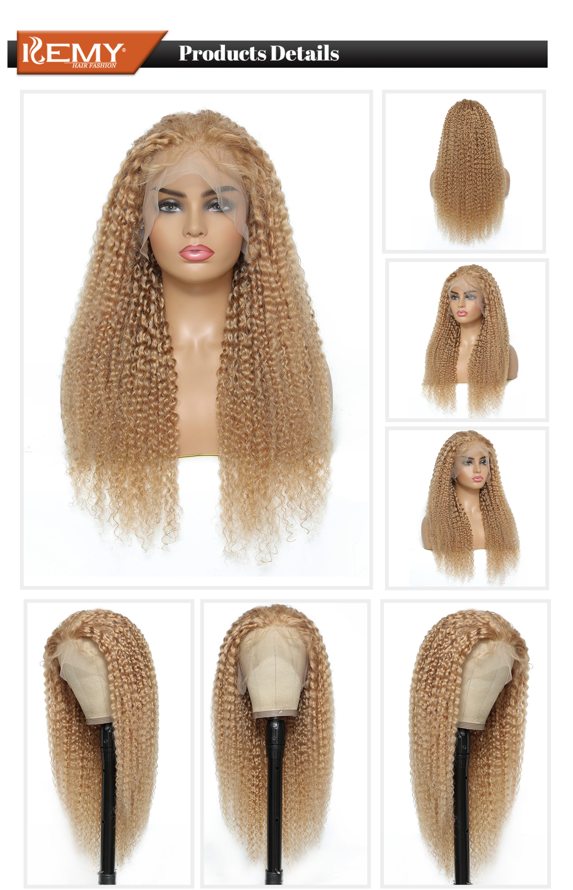 Kemy Hair Custom Honey Blonde Kinky Curly Human Hair 13x4 Lace Frontal Wig