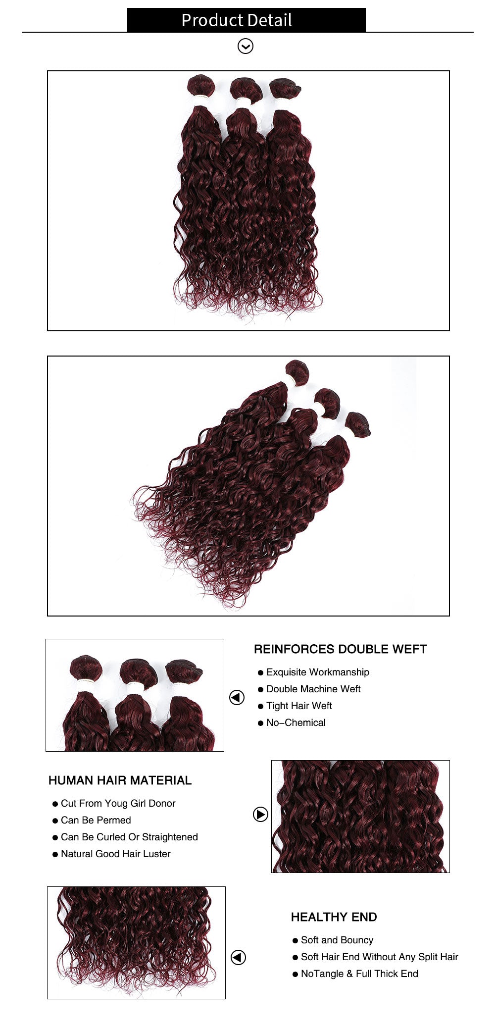 Kemy Hair 99j burgundy Water Wave Three Human Hair Bundles