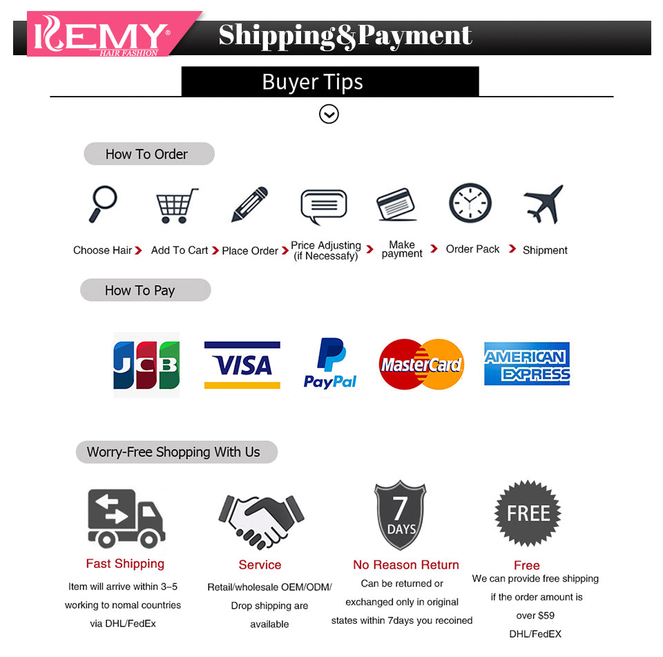 ►Return/refund for no reasons: If you want to return an item without any quality problem for exchange within 15 days once it is received, please send an email to this email address with your order number entitled: support@kemyhair.com. We will offer you the return address.To return your product, you should mail your product to: NO.888 of RuiMei R The Industrial Park of Weidu District XuchangHenanChina 461000 xuchang, 461000 Henan, China