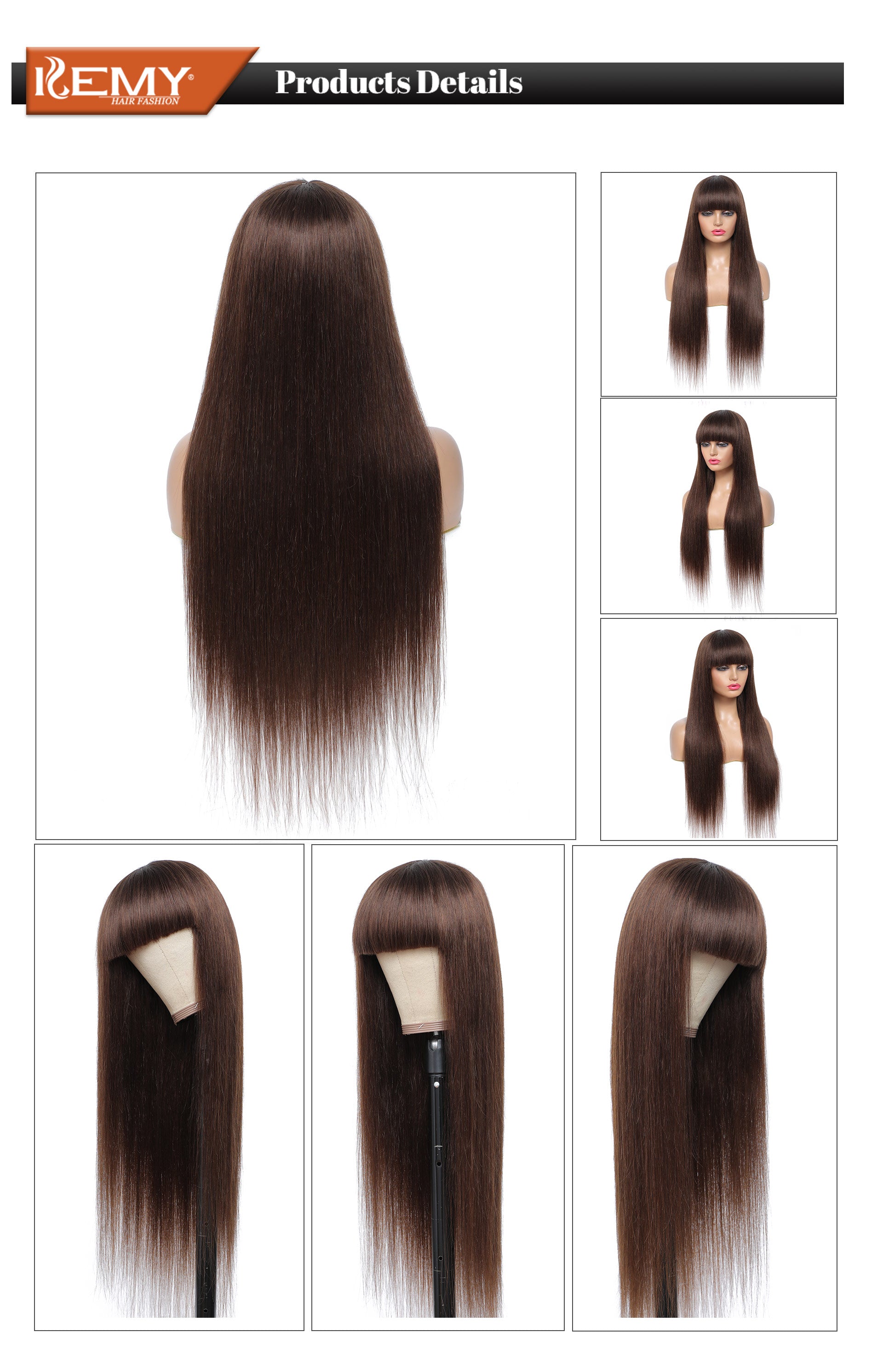 Kemy Hair Medium Brown Straight Human Hair Wigs with Bang 14''-28''(4#)