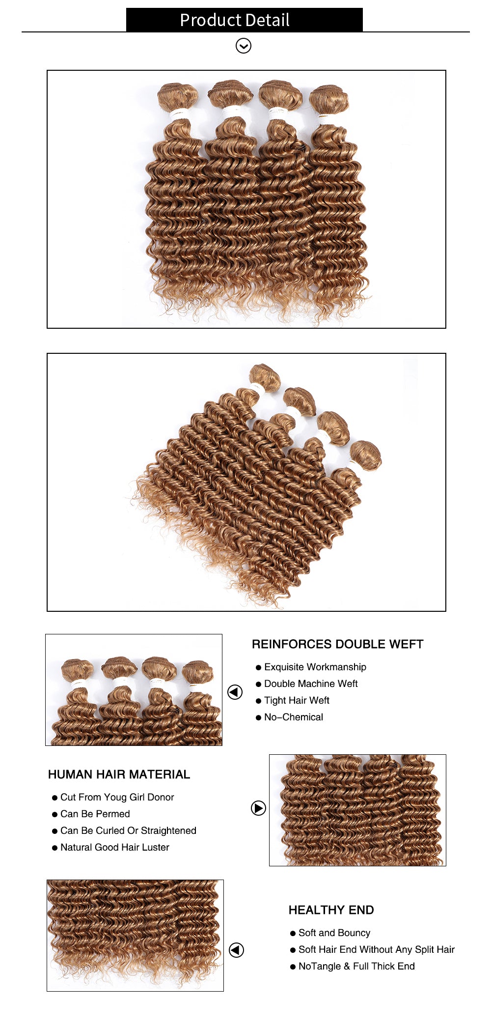 Kemy Hair Honey Blonde Deep Wave 4Bundles Human Hair Weave