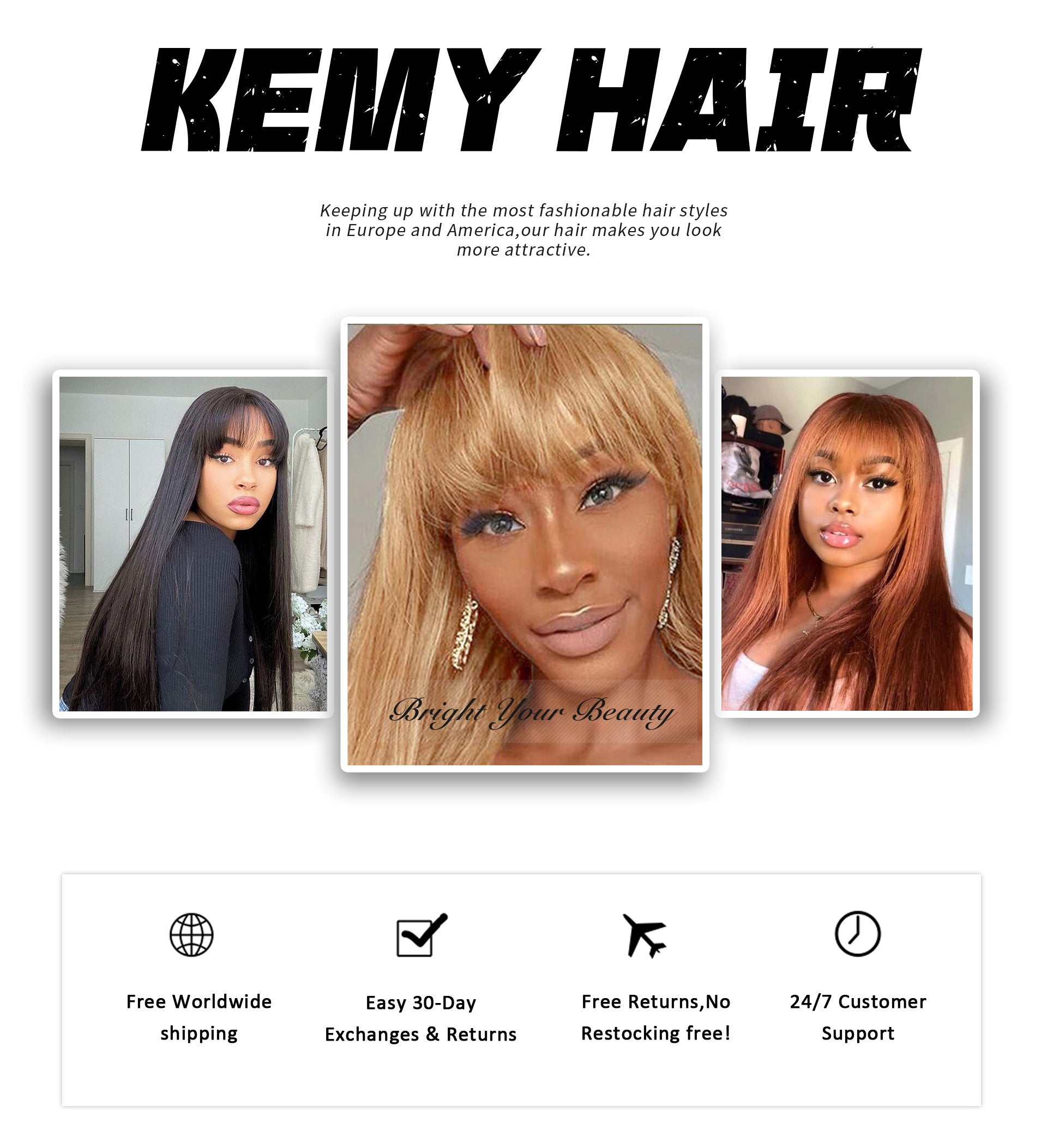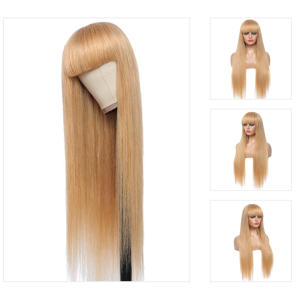 Kemy Hair Honey Blonde Straight Human Hair Wigs with Bang 14''-28''(27#)
